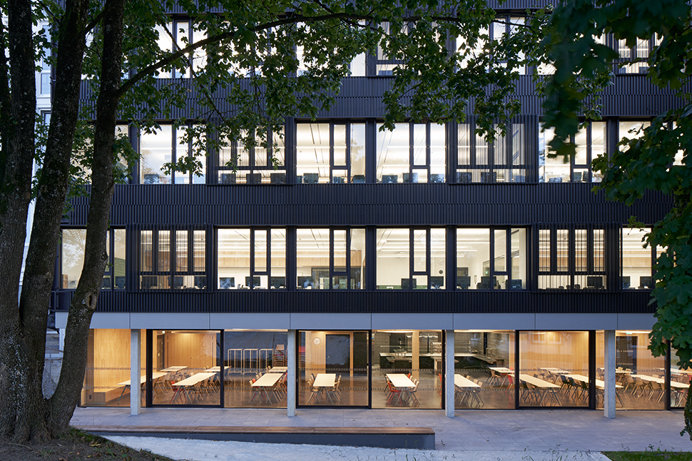 Pünktlich zum Schuljahresbeginn 2020 konnte der 1. Bauabschnitt der umfangreichen Baumaßnahme an der Berufsschule in Wasserburg in die Nutzung übergehen. Der neue Speisesaalbereich steht den Schülern und Lehrern nun als attraktive Sonderfläche mit Außenraumbezug zur Verfügung.