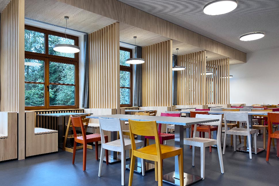 Der erste Teil der Sanierung und des Umbaus des Kommunikationsgebäudes an der Kinderklinik in Hochried in Murnau am Staffelsee ist abgeschlossen. Die Speiseausgabe und die Speisesäle in der Ebene 5 sind nun wieder in Betrieb.