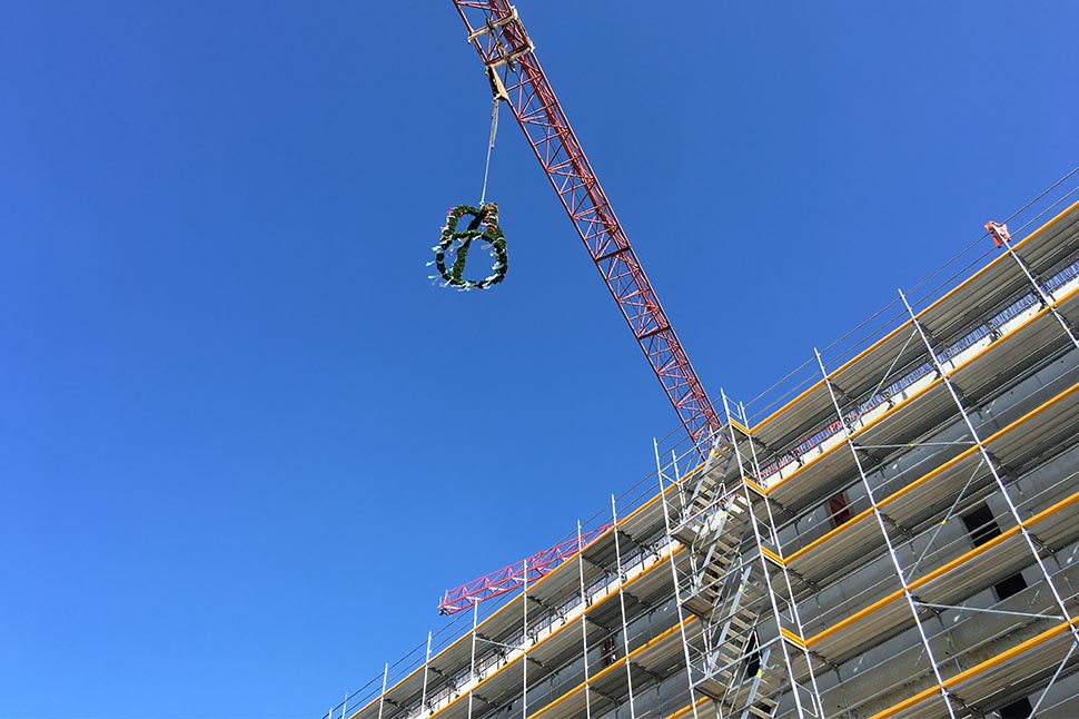 Mit Festreden des leitenden Baudirektors des Staatlichen Bauamts Augsburg Herrn Uwe Fritsch, der Ministerialdirigentin Marion Frisch, des Polizeipräsidenten des Polizeipräsidiums Schwaben Nord Herrn Martin Wilhelm sowie der Oberbürgermeisterin der Stadt Augsburg Frau Eva Weber wurde vergangene Woche das Richtfest auf der Baustelle in der Reeseallee gefeiert.