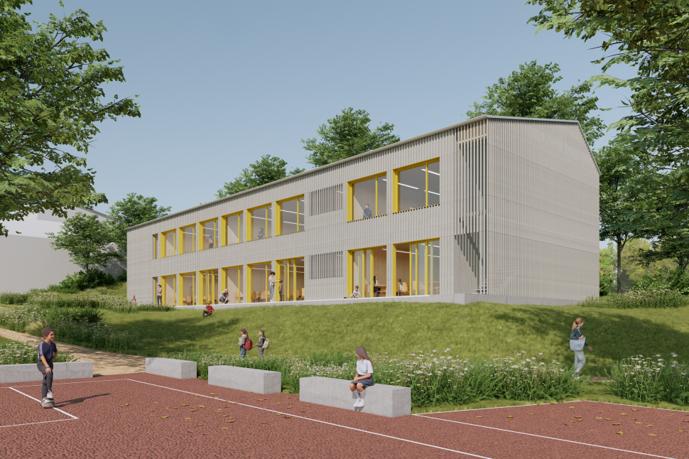 Wir freuen uns über den Zuschlag für die Erweiterung der Grundschule Röfingen – mit offenem Ganztag und neuem Speisebereich in Holzbauweise.