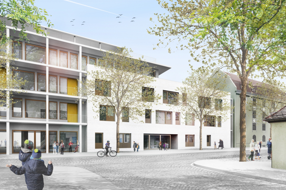 Neubau einer 2-zügigen Realschule mit Mensa und Zentralküche, sowie ein Haus für Kinder mit 3 Krippen- und 3 Kindergartengruppen und einer Hortgruppe, mit Tiefgarage und Wohnung THV