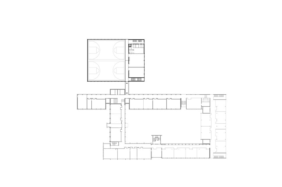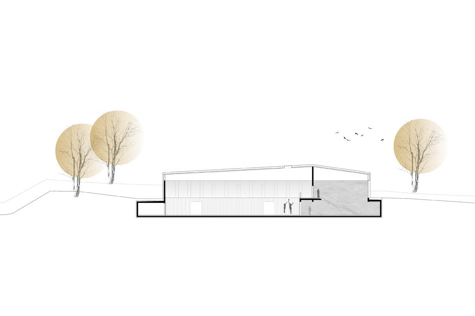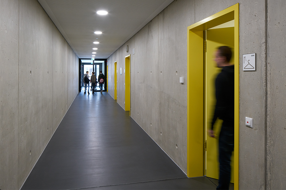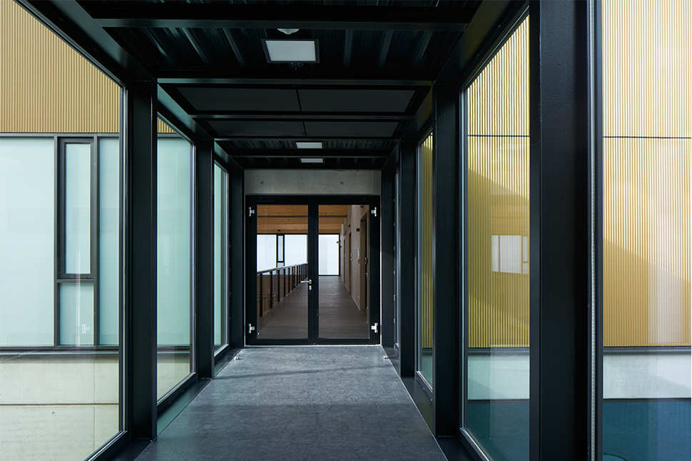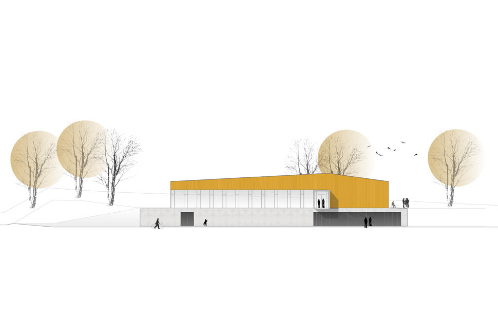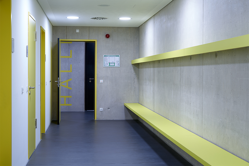 Neubau einer Zweifachsporthalle inklusive Ganztagesbereich mit einem Dachtragwerk aus Holzbindern.