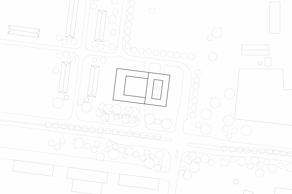 Eine zweigeschossige Struktur besetzt das Baufeld blockartig und weist im Osten einen fünfgeschossigen Kopfbau auf, welcher den Eingang zum Reeseareal markiert. Die Gebäude sind durch den außenliegenden Flurbereich introvertiert organisiert. Der Polizeihof und der kontemplative Innenhof erzeugen hierzu die nötige Qualität. Die Massivität der perforierten Ziegel-Fassade verdeutlicht die schützende Funktion. Lediglich die Wache als Adresse tritt als offenes Fassadenelement hervor.