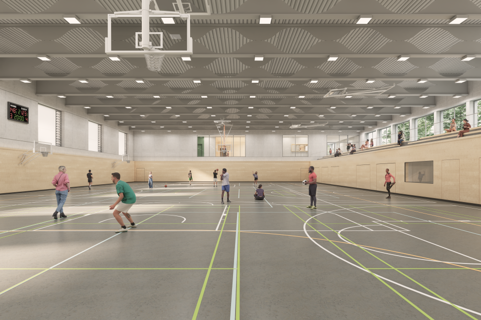 Neubau einer Dreifachsporthalle mit Tribüne für den Schul- und Vereinssport in der Parlerstraße in Nürnberg. Im Zuge des Projekts werden die bestehenden Sportfreianlagen neu geordnet und um Laufbahnen sowie eine Sprunggrube ergänzt.