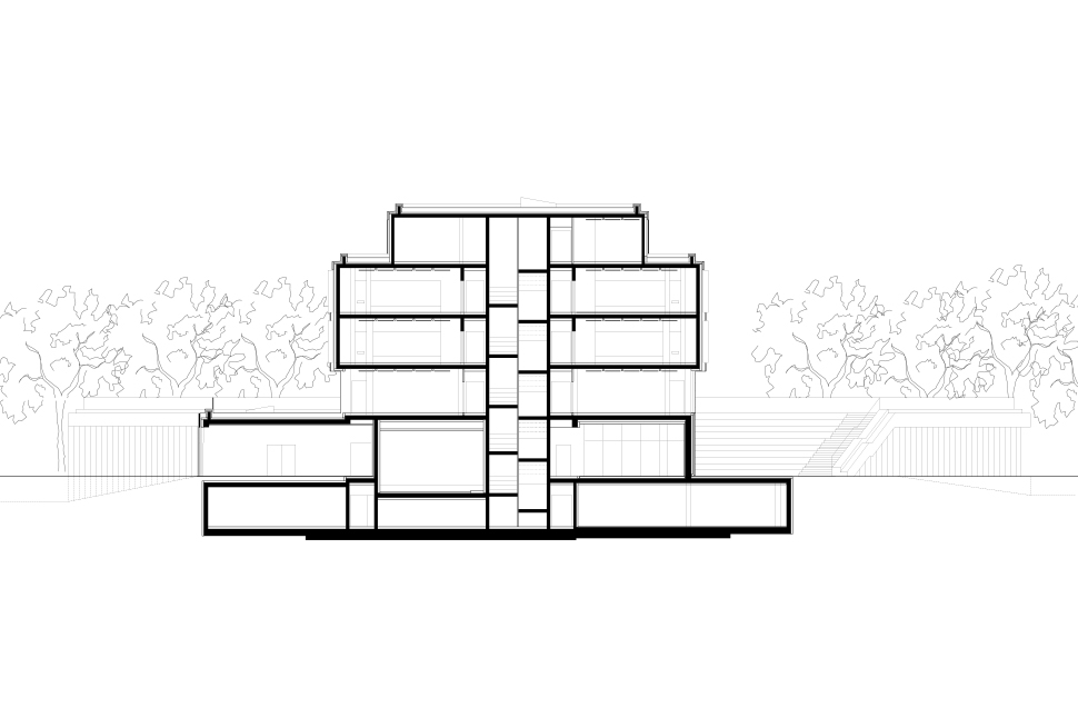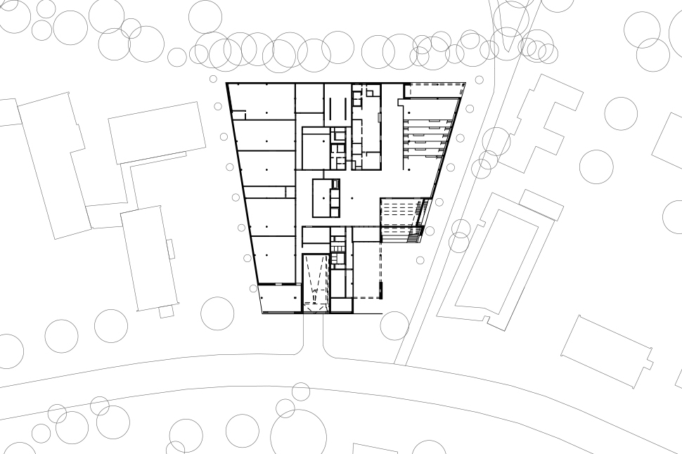 Die städtebaulichen Randbedingungen werden geprägt durch den trapezartigen Zuschnitt des Baugrundstücks. Die schmale Grundstücksseite an der Schanz muss sämtliche Gebäudeerschließungen leisten.