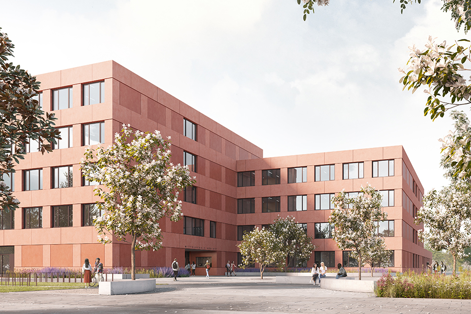 Neubau einer Mittelschule für die Beschulung von 34 Klassen inkl. Förderschulklassen für Schüler-/innen des Caritaszentrums St. Vinzenz mit Unterrichtsräumen und Heilpädagogische Tagesstätte sowie Mittagsverpflegung, Fachklassen, Lehrküche und einem Jugendtreff in Holzbauweise.