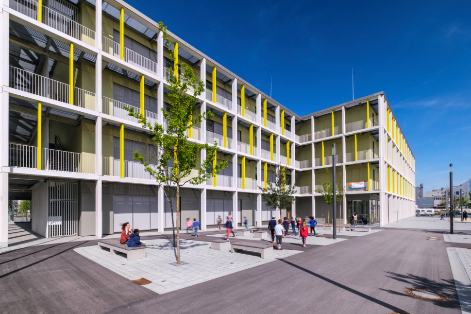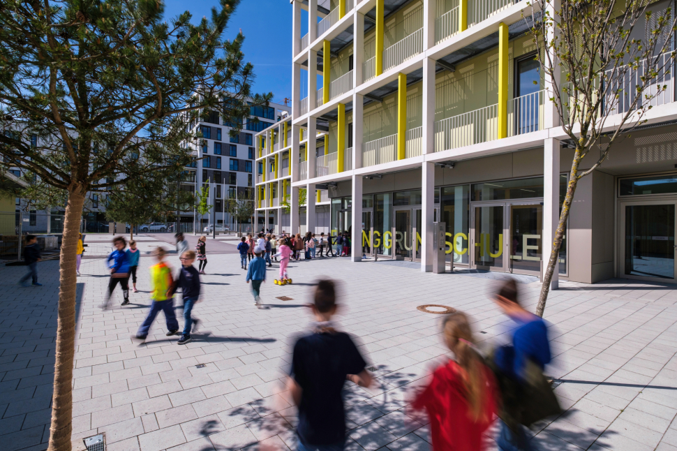 Neubau einer 6-zügigen Grundschule, Fachklassen für Werken, Gestaltung und Mehrzweckraum im Erdgeschoss, einer Tiefgarage, einem Speisesaal mit Nutzungsmöglichkeit als Versammlungsstätte für 300 Personen, einer Dreifachsporthalle und einem Patiohaus mit Wohnung der technischen Hausverwaltung im Neubaugebiet Hermine-von-Parish-Straße in Neupasing.