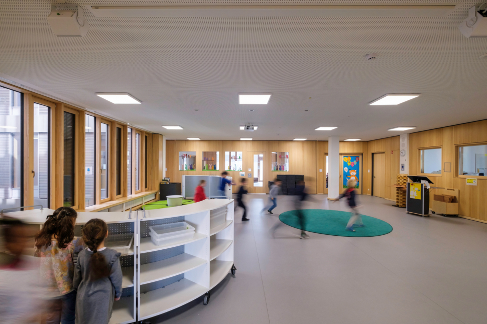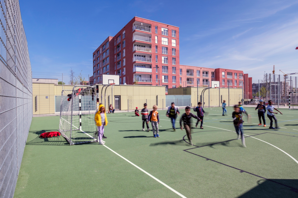 Neubau einer 6-zügigen Grundschule, Fachklassen für Werken, Gestaltung und Mehrzweckraum im Erdgeschoss, einer Tiefgarage, einem Speisesaal mit Nutzungsmöglichkeit als Versammlungsstätte für 300 Personen, einer Dreifachsporthalle und einem Patiohaus mit Wohnung der technischen Hausverwaltung im Neubaugebiet Hermine-von-Parish-Straße in Neupasing.