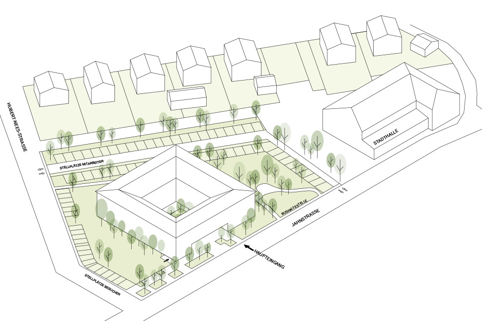 Neubau eines Verwaltungsgebäudes für das Finanzamt Obernburg am Main und die Bearbeitungsstelle Nürnberg Nord in der Stadt Obernburg in Holzbauweise.