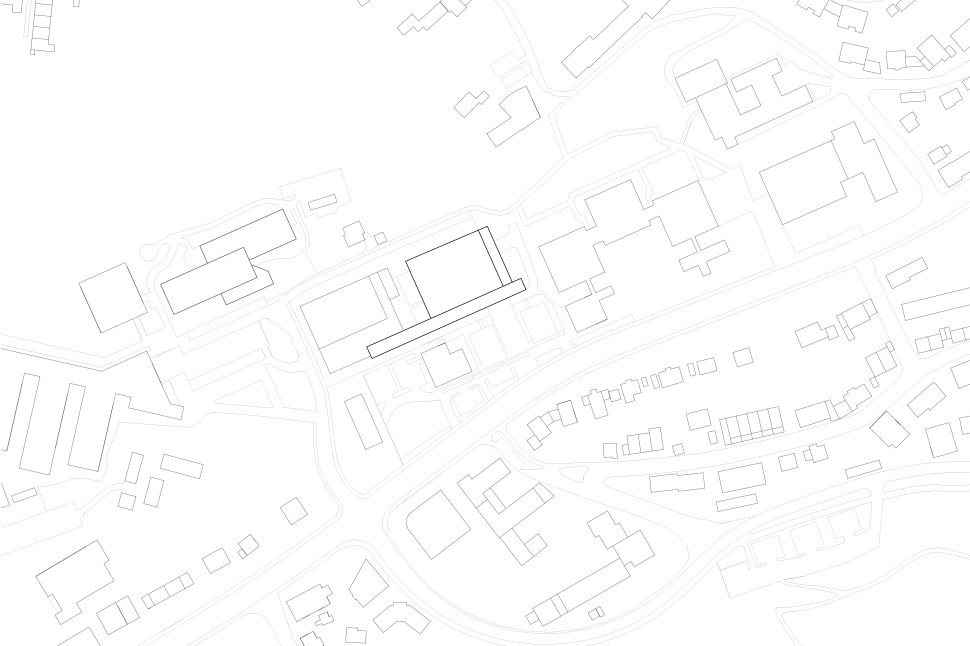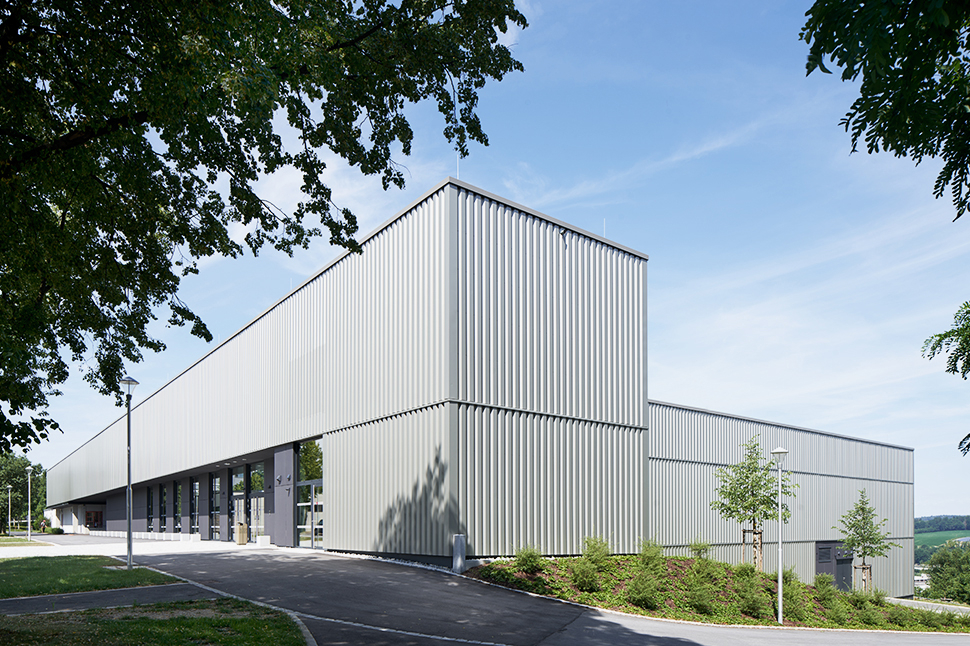 Das Grundstück der neuen Sporthalle ist zum einen durch das Vorfeld zur Neuburgerstrasse gekennzeichnet, zum anderen durch die Topographie des nördlich abfallenden Geländes mit Blickbeziehungen zum gegenüberliegendem Donauufer. Im Osten schließen die Baukörper der Wirtschaftsschule an, im Westen das Berufsschulzentrum. Die neue Sporthalle wird baukörperlich analog zur bestehenden Halle hangparallel angeordnet. An der Südseite entsteht eine übergeordnete Wegeverknüpfung Wirtschaftsschule - Berufsschule (Magistrale). Die Erschließung der Tiefgarage erfolgt über die tieferliegende Nordseite.