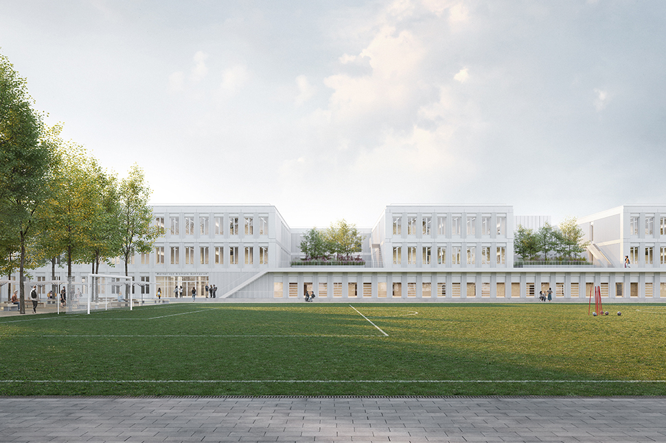 Erweiterung des Werner-von-Siemens Gymnasiums mit 4 Sporthalleneinheiten, Lernhäusern, Fachklassen, Aula, Mensa Ganztags-und Verwaltungsbereich.