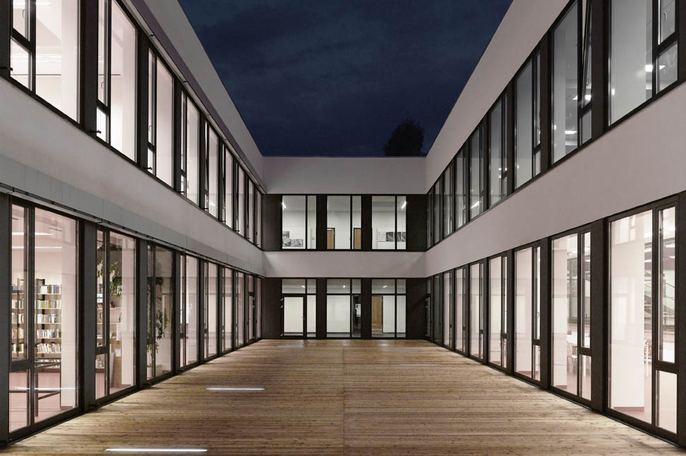 Als Prämisse für den Entwurf galt zum einen der Verzicht auf größere Neubauteile, zum anderen eine übersichtliche und einfache Wegeführung im Gebäude. Außerdem sollte der Außenraumbezug für die Aufenthaltsbereiche optimiert werden und das Untergeschoss als vorhandene Baumasse aktiviert werden, um einen kompakten Baukörper mit möglichst geringen Betriebskosten zu schaffen. Die Neuordnung nutzt die vorhandene modulare Baustruktur mit einem robusten Tragsystem und ergänzt ein leistungsfähiges Erschließungskonzept. Es werden flexible Raumzonen angeboten, die optimal belichtet und natürlich belüftet werden. Nachträgliche Anpassungen an geänderte Raumanforderungen sind problemlos umzusetzen. Unter Beibehaltung des Gebäudekonzepts wird die geschlossene Baustruktur durch zwei neue Innenhöfe aufgebrochen, die thematisch identifikationsstiftend sind. Die Orientierung wird somit erleichtert und es werden Lichtpunkte an den Verkehrswegen gesetzt.