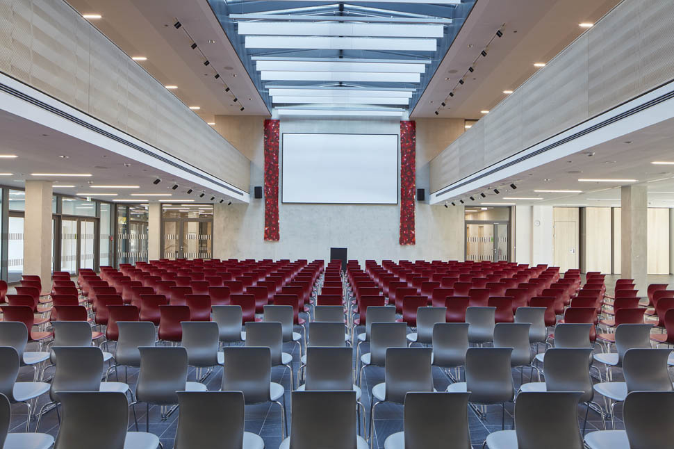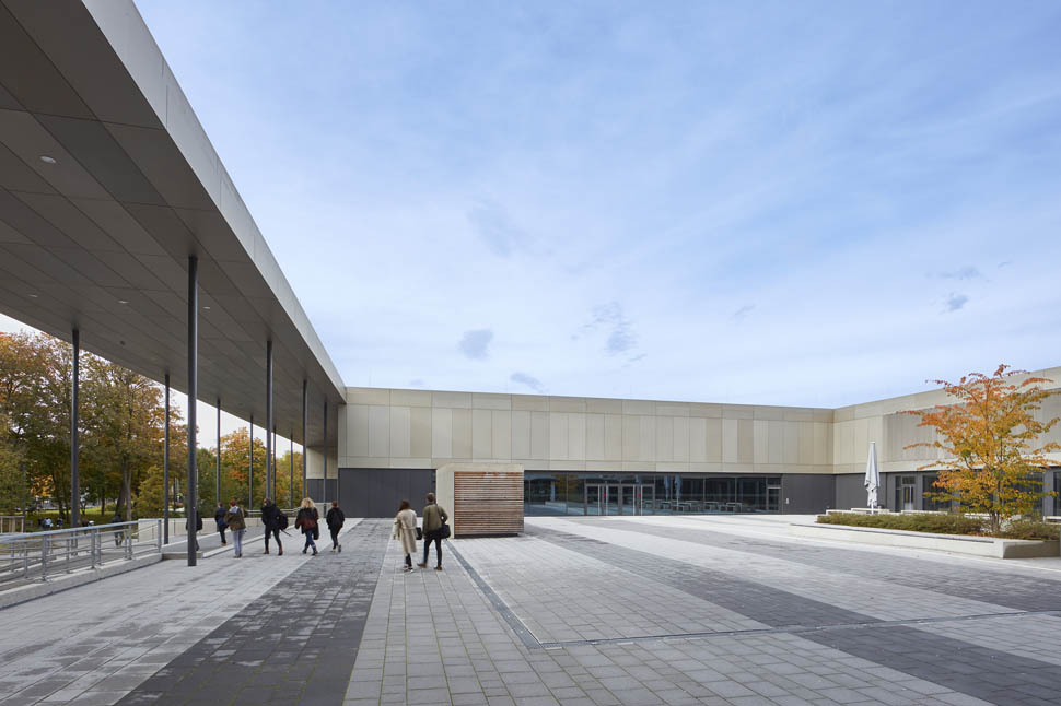 Neubau von Unterrichtsräumen in Clustern, Fachklassen, Werkstätten, Mittagsbetreuung und Verpflegung, Tiefgarage und Dreifachsporthalle