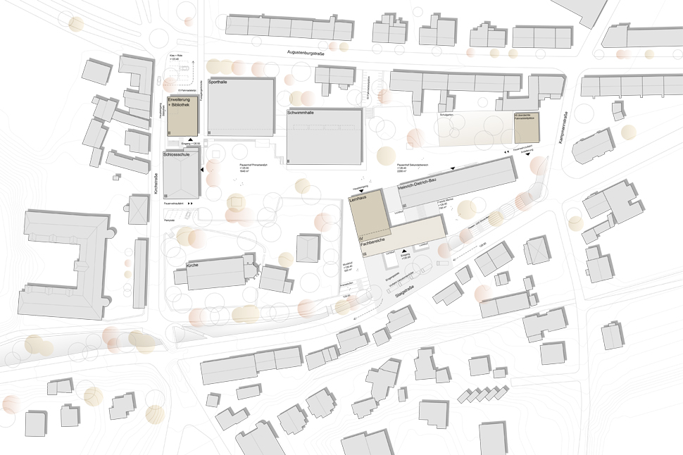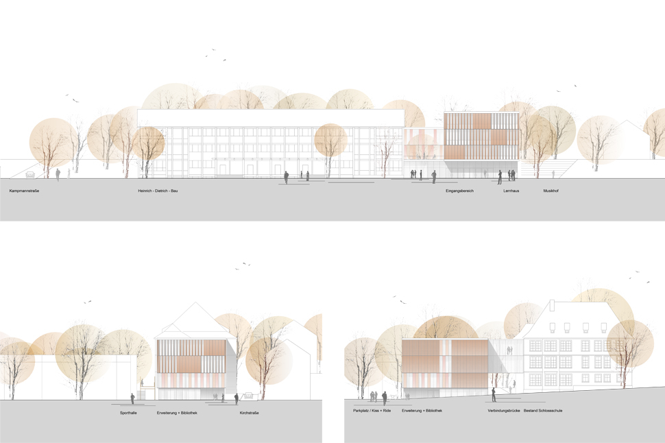 Neubau der Stadtbibliothek und Erweiterung der Gemeinschaftsschule zur dreizügigen Grundschule mit Ganztagsbereich, 2.5 zweizügigen Sekundarstufe mit Inklusion, Lernclustern, Fachklassen, Ganztagsbetreuung, Verwaltung und Mensa in Karlsruhe Grötzingen