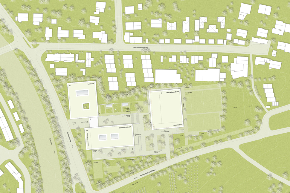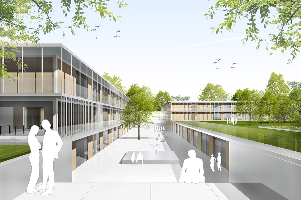 Umstrukturierung und Neubau des Hauptgebäudes als vierzügige Schule mit Inklusion, Lernclustern, Fachklassen, Ganztagesbetreuung, Verwaltung und Mensa mit Frischküche in Stuttgart Bad-Cannstatt