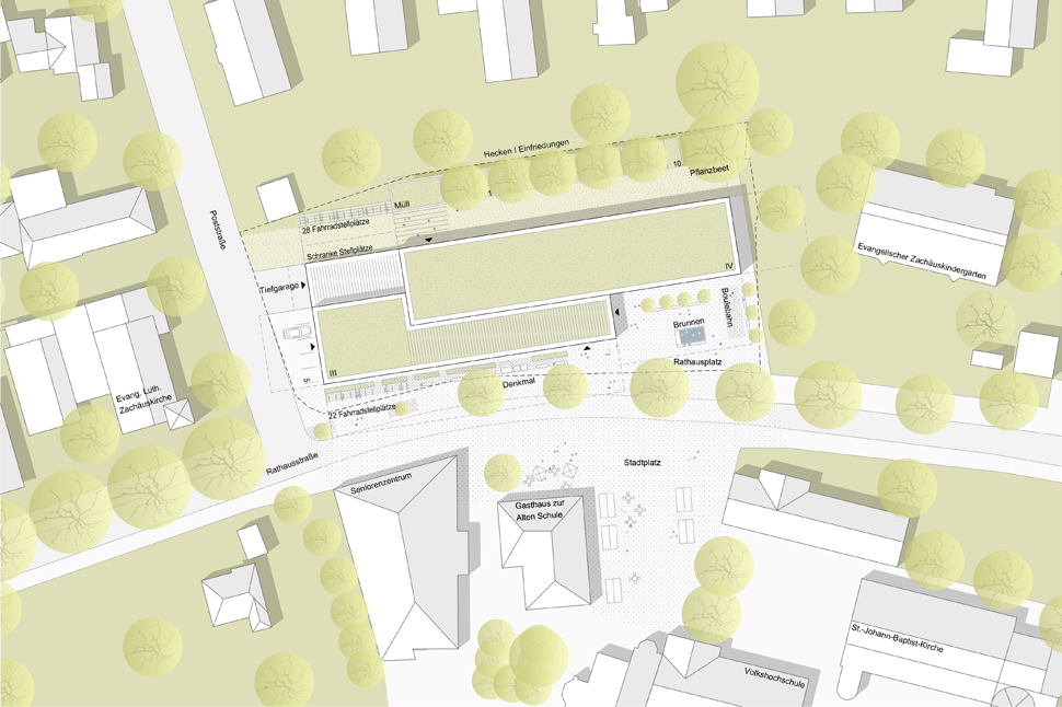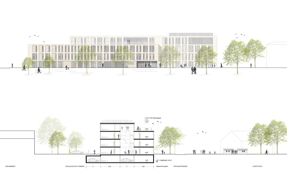 Ersatzneubau des Rathauses mit Sitzungs,- und Trausaal, Bürgerservice, Verwaltung, Hausmeisterwohnung, Mitarbeiter-Sozialbereich und Tiefgarage in Gröbenzell
