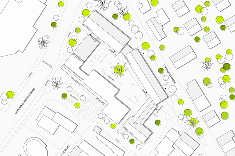 Generalplanerleistungen für den Umbau und die Erweiterung der Volksschule I, Volksschule II und dem Sonderpädagogischen Zentrums in SaalfeldenAT