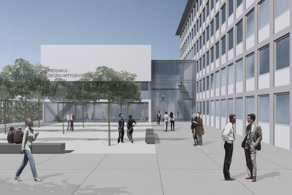 Technische Sanierung des Gebäudeensembles, brandschutztechnische Ertüchtigung, Fassadensanierung und Neubau eines Mitarbeitercasinos und Sitzungssaals für das Kreishaus in Siegen