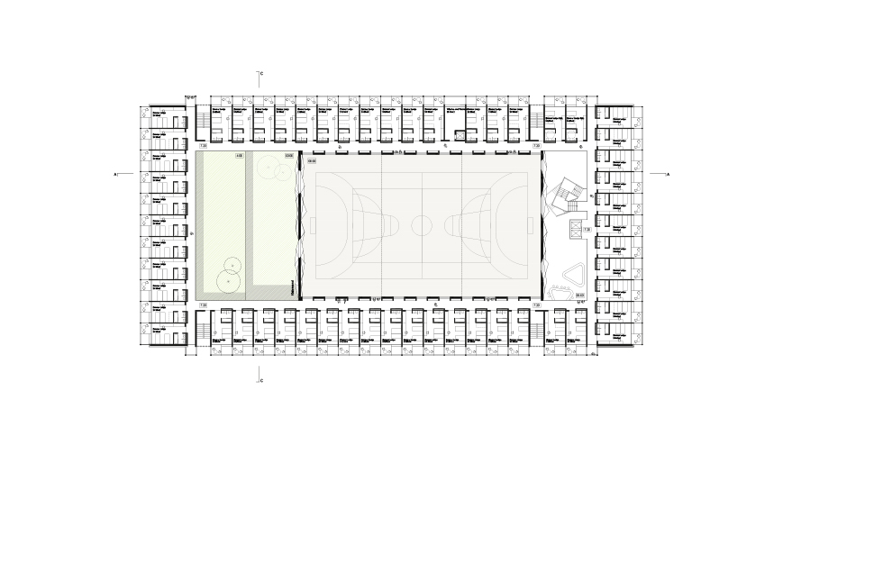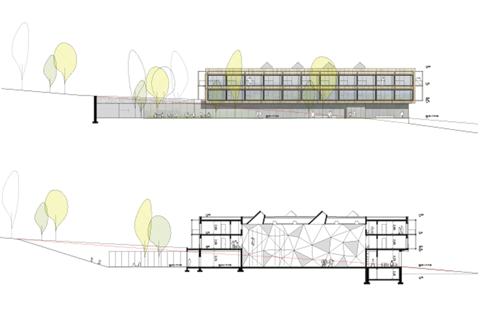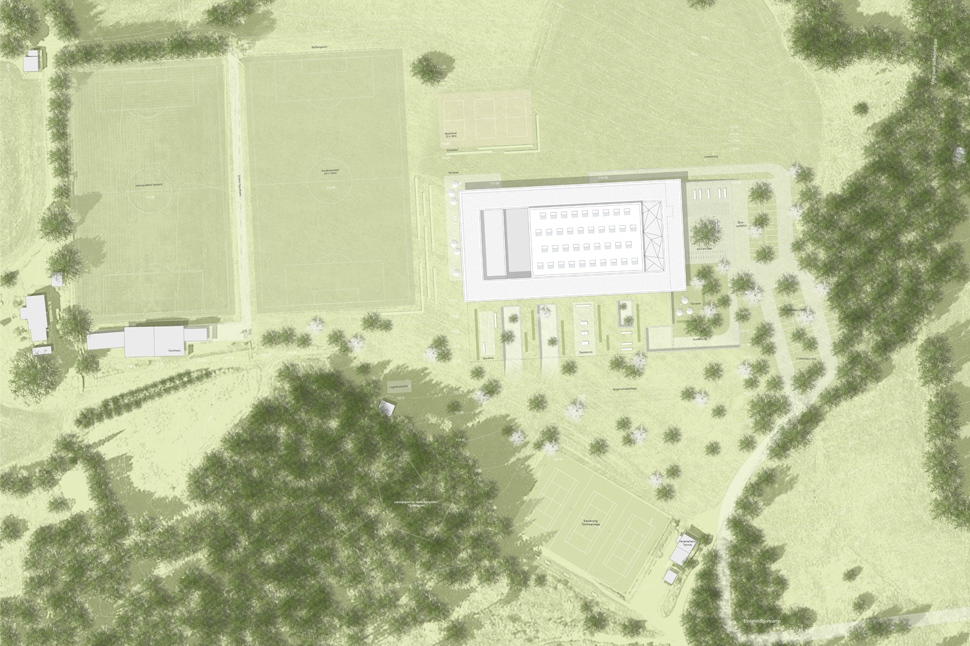 Neubau eines Sportcamps bestehend aus Unterkunftszimmern, gastronomischen Einrichtungen, Sport- und Freizeitmöglichkeiten, einschließlich Dreifachsporthalle, Fitnessbereich und Regenerationsbereich, sowie Seminar- und Gruppenräume.