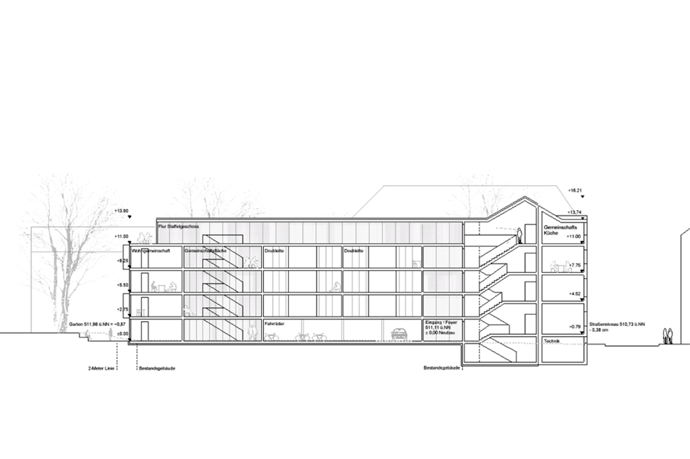 Umbau und Erweiterung der Wohnanlage mit studentische Einzelapartments, behindertengerechte Einzelapartments Wohngruppen mit Gemeinschaftsküchen, Eltern-Kind-Apartments, Doubletten und einer Vielzahl unterschiedlich nutzbarer Gemeinschaftsräume in München